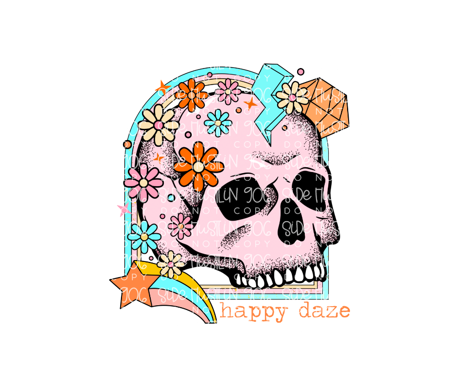 Happy Daze skull-Ready to Press Transfer